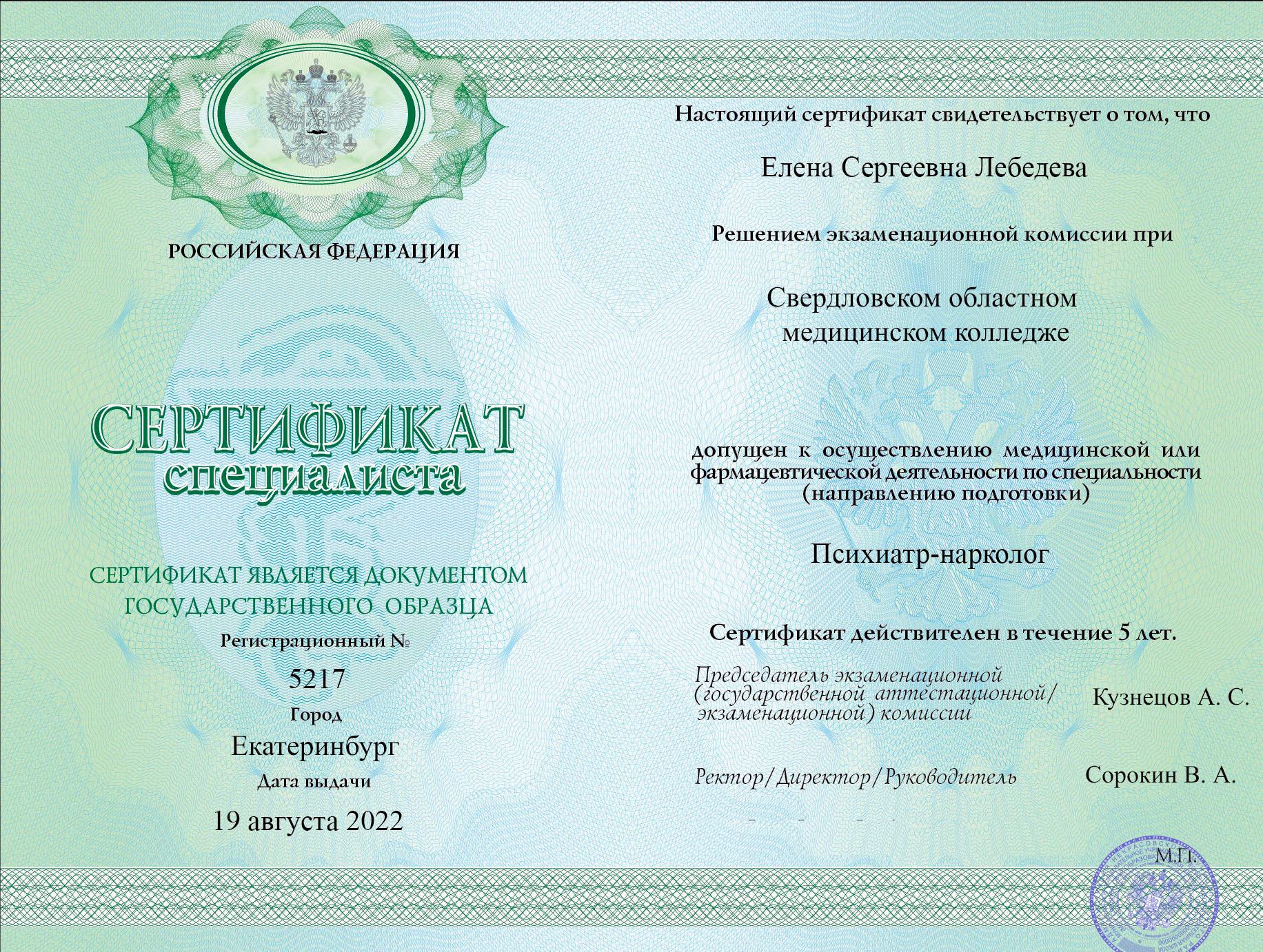 Елена Сергеевна Лебедева врач нарколог клиники доктора Стукаловой в Красном Яре